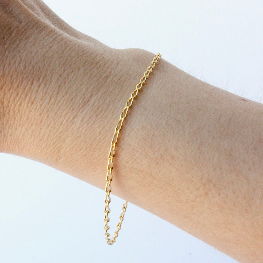 Named for their link shape resembling a figure eight or infinity symbol, this link style has a history rooted in ancient techniques of chain making, and we are thrilled to add a modern version to the line. The links offer a visually appealing and textured look, and a lot of strength and durability making it an incredibly versatile chain to add to any bracelet stack.